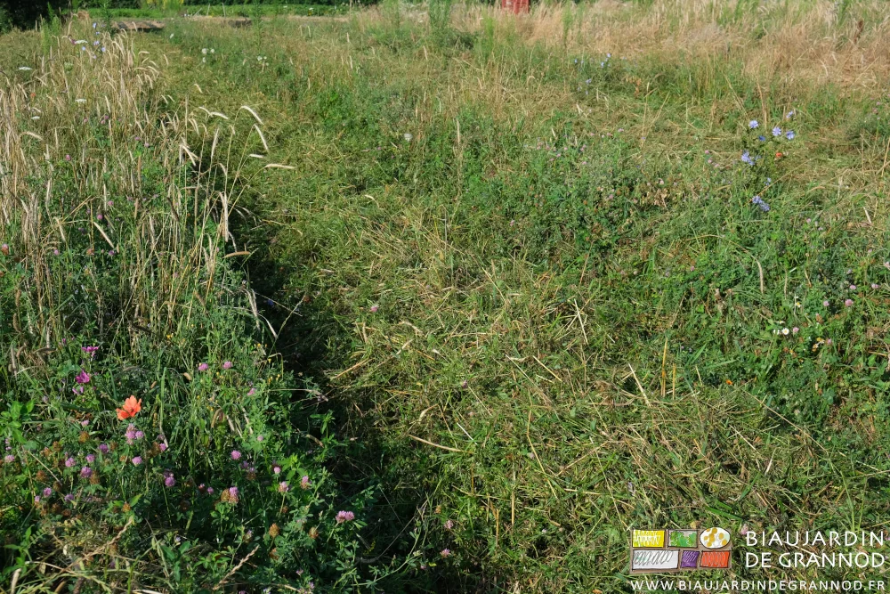 et assez en hauteur ce qui, chez nous, semble le meilleur compromis pour favoriser « en même temps » la diversité, parce que notamment coquelicot, mauve, trèfle blanc, trèfle violet,